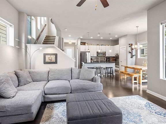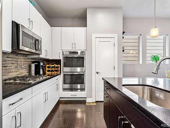 *Previous buyer terminated due to cold feet...didn't even do an inspection.*. Welcome to this modern masterpiece in Midtown! Ideal layout and beautiful finishes make this home exceptionally desirable. Tucked on a quiet street in the neighborhood with curb appeal galore; blooming crabapple trees, a Linden tree, and vines on the pergola. On the main level you'll find open concept kitchen, dining, and living space as well as an office and powder room. The kitchen boasts a large island, quartz countertops, a pantry, stainless steel appliances, double oven, and gas range. Living room features a hand-crafted mantle and gas fireplace. Upstairs features three bedrooms including the primary suite and a laundry room. The finished basement has high ceilings, a large living space, a spacious fourth bedroom (conforming) and a beautiful new 3/4 bathroom with designer finishes! Basement is wired for entertainment center and surround sound plus plumbed to add wet bar if you desire. Outside is a lovely deck for outdoor living. The over-sized two car garage completes this property. This home has been well-cared for and is ready for a new owner to enjoy! The Midtown community has many amazing amenities to enjoy... splash park, community garden, neighborhood award winning brewery with rotating food truck and live music, plus the elementary school is in walking distance. All this while being only 12 minutes from downtown Denver!