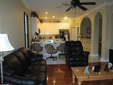 Large open 5/3 home in a gated comm. Granite counter top pass through in kitchen, high hats, crown molding, plantation shutters, built in entertainment center, upgraded master closet with organizers, fans. Pull down stairs and shelves in garage. Screen patio. Hurricane shutters. Fruit trees in yard. Water softener. HOA includes cable, alarm, gate & pool.