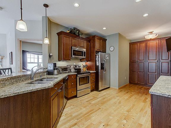 Luxury ranch twin-style condo w/3 bdrms, 3 baths & over 2200 sq/ft offers gorgeous views of open space & Upper Yahara River Trail from the southwest facing windows! Huge kitchen w/solid rustic birch wood floors, granite counters, 2-tiered island, cherry finish cabinetry w/built-ins & pantry opens to great rm w/stone surround gas f/p + access to newer Trex deck. Gorgeous birch trim & doors throughout! Master w/huge walk-in shower, double vanity & walk-in closet. 9ft ceilings on main level. Office/2nd bdrm on main level too! Walkout L/L to patio has sunny exposure w/family rm, 2nd f/p, wet bar, 3rd bdrm & 3rd bath.