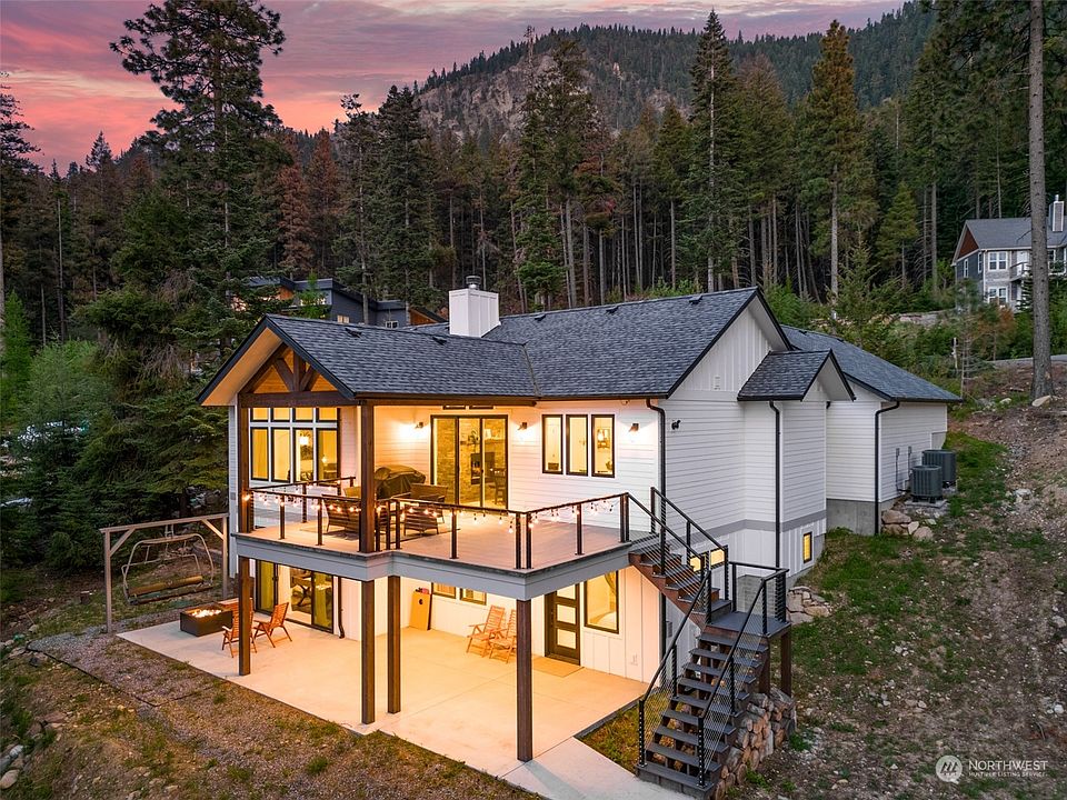Mountain modern custom-built home near the top of Forest Ridge, a desirable neighborhood 15 min from downtown Wenatchee & 10 min from Mission Ridge Ski & Board Resort; bordering Squilchuck State Park. Located in an outdoor recreation mecca, this home is perfect for a primary residence or vacation home. Main level has flat entry access & great room w/ large view windows, gas/wood fireplace w/ slate surround, & covered deck access. Kitchen has quartz island, double oven, apron sink, & walk-in pantry. Primary bedroom has patio access & bathroom w/ heated floors, double sink quartz vanity, oversized tile shower, & water closet. Family room w/ kitchenette & patio access to gas fire pit. Quality throughout w/ black slate & engineered wood floors.