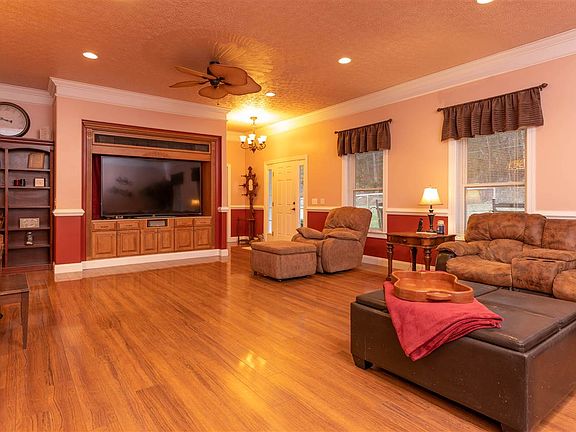 First time to market, custom built, 6 bedroom 5.5 bathroom home on a 6 bedroom septic system minutes from I-81 in Rockingham County. 10 ft. ceilings on main level and exceptionally large rooms throughout. Built in 2012, as the builder's personal home, design, function, and space for entertaining were the priorities. Featuring an expansive living room, the master bedroom, and an additional bedroom and full bathroom on the main level, the open kitchen with a built in bar flow seamlessly into the sunroom and then out onto the two-tiered 3000 square feet of decking. The master bedroom features a large master bathroom with his and hers walk in closets and a private hot tub room off of the master bath. The hot tub conveys. Dual heat pumps.
