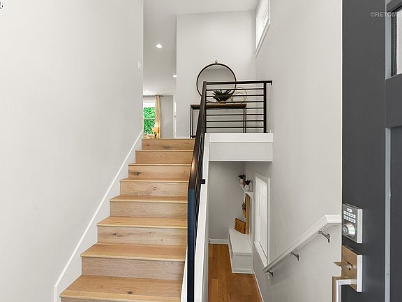 Welcome home, where chic farmhouse style meets modern elegance in a tranquil setting surrounded by lush green space. This beautifully maintained 4-bedroom (plus bonus room), 3.5-bathroom, home offers a spacious and thoughtful layout, ideal for both relaxing and entertaining. The main level features an open floorplan, seamlessly blending the kitchen, living room (complete with a elegant, electric fireplace), and dining room. The beautiful kitchen is a chef’s dream, showcasing Bosch stainless steel appliances, quartz countertops, and a large island perfect for meal prep or casual dining. Gorgeous, engineered hardwood flooring flows throughout the main level. From the living and dining areas, step out onto the deck, where you can enjoy views of the green space and the occasional wildlife, like deer. A bonus room on the main level can serve as an office, a 5th bedroom, or anything else that suits your needs. Upstairs, the spacious primary suite offers serene views of the surrounding greenery, along with a spa-like bathroom and a large walk-in closet. Two additional bedrooms, another full bathroom, and the laundry room complete the upper level, all with wall-to-wall carpet and overlooking the lush green space. The lower level adds even more versatility to this home, featuring a spacious family room, a bedroom, a full bathroom, and exterior access - ideal for multi-generational living or guests. Outside, enjoy a covered patio and fully fenced yard that overlooks the peaceful green space, providing the perfect backdrop for outdoor activities and relaxation. Located in close proximity to top-rated schools, shopping, dining, parks, trails, and major employers like Nike and Intel, this home offers the perfect blend of modern living and natural beauty.