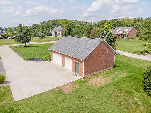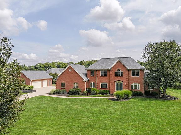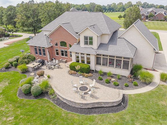 Custom built home nestled on cul-de-sac w/nearly 2 manicured acres. 6 car garage w/ efficient infrared heater; H & C water! Country setting yet 20 mins to downtown! Timeless architecture w/ pillars, oversized trim, hardwood flooring, custom built-ins & thoughtfully designed interiors. 1st floor Owner's Suite boasting jetted tub, separate vanities & ample closet space. Well-designed kitchen w/SS appliances, center island, under/over cabinet lighting & planning area for ease w/prep, cooking & serving! Enjoy the screened porch, paver patio, gas fire-pit & elegant water feature. New carpet in the walk-up finished lower level w/rec rm, gym, bdrm & full bath. Whole house generator, central vac, built-in speakers, & above garage storage are just a few of the additional upgrades this home offers.