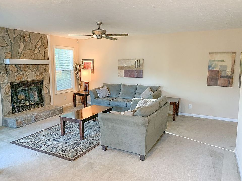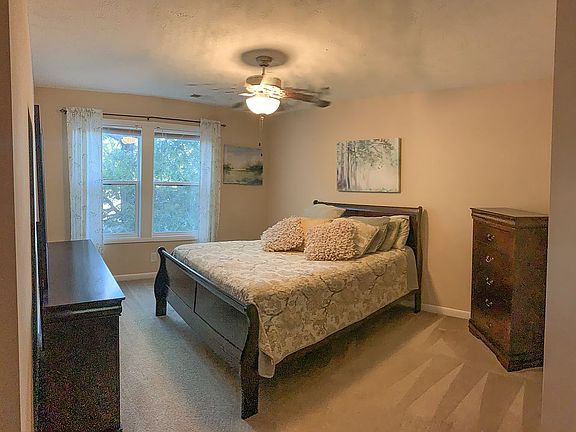 Freshly painted, clean carpet, and fully furnished. Second floor condo with 2 bedrooms and 2 full baths! Beautifully furnished with couch, loveseat, coffee table and end tables. Rugs, wall decor, and dining room table and chairs are also included. Master bedroom is fully furnished with queen bed, pillow top mattress, end tables, counter dresser, and chest of drawers. The second bedroom is set up as an office space with desk and chair and large closet. Laundry room off the kitchen has full sized washer and dryer. You'll love the back porch off the living room area. You can sip your coffee while you enjoy the natural views. HOA includes lake access, community pools, public grills, and more! Just minutes from the Ft. Bragg gate, shopping and restaurants! Owner pays HOA dues. Tenant is responsible for utilities (approx. $100 for electric). Rental deposit includes $500 for furnishings and $950 deposit at move in. No pets allowed and no smoking. Credit and background check will be paid for by applicant $29.