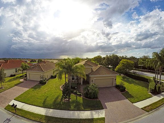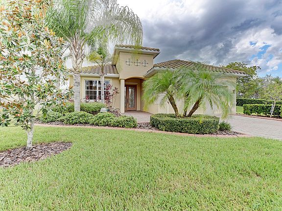 This stunning residence is a former model home built by Medallion Home. The St. Thomas floor plan is one of the most sought after in this active community. Every glance is met with quality craftsmanship beginning with the paver driveway and lush, tropical landscaping. Once inside the grand foyer, you'll be amazed at the details throughout that will make this home stand out from any you have seen in Cascades! Beveled glass front door, built in shelf w/beadboard wall impressively welcomes guests. The open-concept home features diagonal ceramic tile, vaulted ceilings, neutral decor and upgrades throughout. Stunning kitchen with gorgeous wood cabinets, stainless steel appliances and level 4 granite. Dining room/great room combo, where the vaulted ceiling is highlighted with rafters and custom built-in cabinetry. Architectural details include vaulted archways, tray ceilings and crown moulding. Den/office features hardwood flooring, built-in desk with granite tops and french doors. The immense master suite provides plenty of room with a huge walk-in closet, corner walk-in shower, dual sinks and more wooden cabinetry. Two additional bedrooms and second bath provide plenty of space for guests or hobby room. Inside utility room is convenient and beautiful! The crown jewel of the home is the beautiful screened-in lanai, with paver flooring, custom built counter w/sink, under cabinet lighting and a private, tropical view. Enjoy the many amenities that Cascades of Sarasota offers. Schedule today this one won't last!