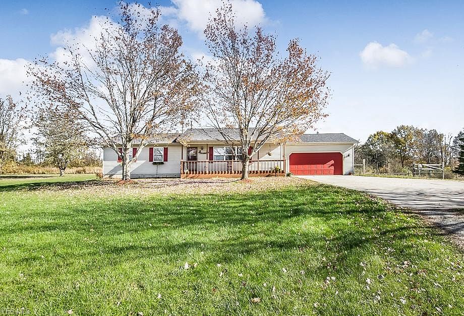 Wonderful ranch home living with 3 acres & a golf course behind the property. One floor living with 3 bedrooms, master bath & first floor laundry. Spacious living room with Castle pellet stove is open to the large dining area. The U-shaped kitchen has plenty of counter space & has enough room for a few chefs. The sliding glass door opens to a deck & fenced in area which overlooks a walking path that separates you from the Medina Country Club. 2 car attached garage & huge open basement are great for storage. Features & updates include: vinyl siding, roof 2019, laminate flooring & fresh paint. All Appliances & 12-Month Home Warranty Included. Take a trip to see this hidden gem of a property!