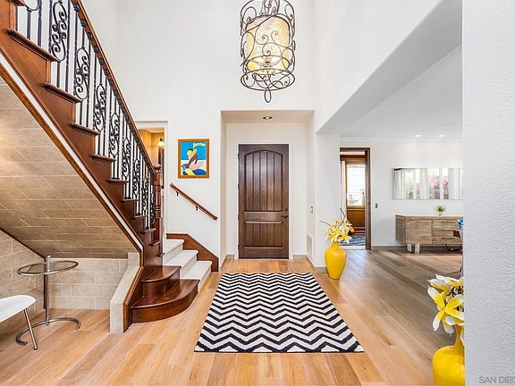 Entertainer's Dream Home with ocean views in the prestigious Bay Collection in Carlsbad! Designed for fluid living, this showcase home is a rare find and sure to impress you from the moment you arrive, with partial ocean and breathtaking sunset views from the resort style backyard. Incredible opportunity to own this truly stunning home located only 1.6 miles to beautiful Carlsbad beaches. Enjoy California’s outdoor living in this backyard paradise, complete with a sparkling pool and spa, outdoor fireplace, 13x13 Palapa, oversized BBQ island, artificial turf, and tropical landscaping.