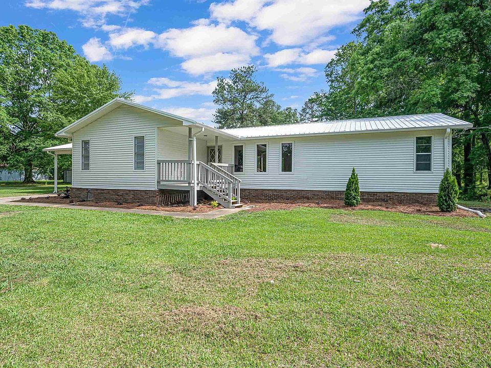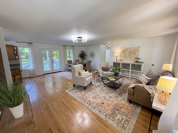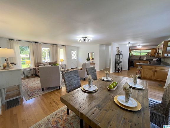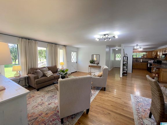 A lovely tree-lined driveway leads to this modern farmhouse perfectly placed on over 3 acres of level land. A large 2 car attached carport leads to the side entry and into the updated kitchen with solid surface counter tops, tile backsplash and molded sink. New Appliances. The eat in kitchen features solid wood cabinets, yards of counter space, and a peninsula with extra storage below. Gleaming natural hardwood flooring through the kitchen, living room and hallways give this home a wonderful open feeling, flowing from room to room. A private hall takes you to the main bedroom with separate closets and a new full bath. The remaining 2 bedrooms have wood looking tile flooring and the second full bath. This home has a finished walk out basement This property is deep with a storage shed as well as an open shed in the rear. Secluded country living minutes from I-459. This home is zoned county and close to the new UAB West Hospital. This home is in a USDA zone.