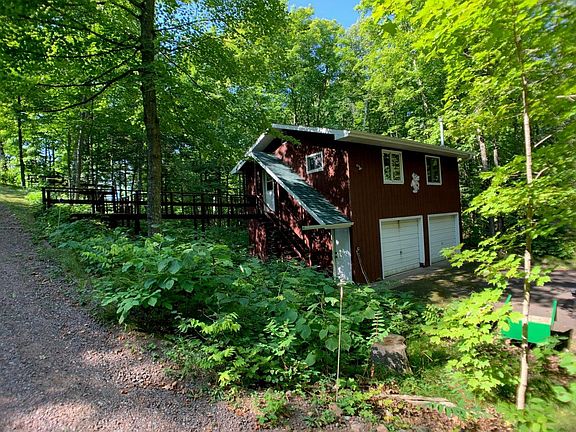 (273/PR) Escape to English Lake. Nestled in the Penokee Mountain Range along the north shore of English Lake, you’ll find this one-of-a-kind property. A nature lover’s paradise. With 330+/- feet of lake frontage, this location simply cannot be beat. Open concept home with kitchen flowing into the dining area and large living room. Knotty pine cathedral ceilings, a wall of windows facing Northwest, and a deck on the lakeside allows you to enjoy your surroundings year-round. Convenient single story living with first floor laundry located inside the full bath. Plenty of room for family and guests in the 2-story detached garage with heated living quarters on the second story. Whether you’re looking for a full-time residence or a second home on the water, you’ll want to check this one out. Excellent location - borders national forest, near many area lakes and rivers, Copper Falls State Park and 20 miles from Ashland. Call today. $339,900. (W1/2 W1/2 of Govt. Lot 2, 5-44N-3W)