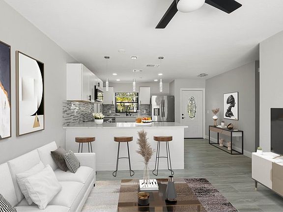 One or more photo(s) has been virtually staged. Welcome to this stunning newly renovated 3-bedroom, 2-bathroom, 1-car garage home that offers modern luxury and convenience. This home has undergone a complete transformation, featuring a new roof, new AC system, and upgraded electrical to ensure your comfort and peace of mind. The interior boasts exquisite quartz countertops and elegant tile flooring throughout, creating an inviting and cultivated ambiance. The kitchen is a culinary dream with brand-new, appliances, all thoughtfully included for your convenience. Indulge in the tranquility of the new high-end anti-fog bathroom LED lights, making your daily routine a spa-like experience. Every corner of this home exudes freshness, as virtually everything within has been thoughtfully replaced and upgraded to ensure a truly turnkey living experience. Outside, you'll find a fenced yard that offers a secure space for both relaxation and recreation. A shed provides ample storage for your outdoor essentials. Don't miss the opportunity to make this impeccably renovated property your new haven. Schedule a showing today and prepare to fall in love with the new standard of living.