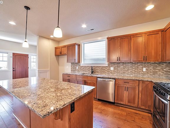 - RoomKitchenFeatures: Granite Counters, Disposal, Gas Appliances, Island, Plumbed for Ice Maker, Engineered Hardwood