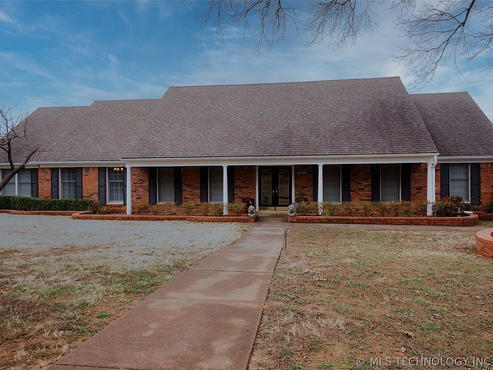 420sqft Guest House with garage plus storage space not counted in square footage! Charming one-story brick home in desirable Williamsburg right next to Southern Hills PGA golf course. Updates galore! Renovated bathrooms and kitchen with granite counters and stainless appliances. It features four bedrooms, 2.5 baths, two living areas formal dining, breakfast nook AND a one bed, one bath apartment with kitchen. Formal living opens to formal dining and second living room has vaulted ceilings, wood beams, combo fireplace and wet bar with sink as well as custom cabinets. New items: AC unit, primary shower, driveway, exterior siding, exterior and interior paint, front porch pillars are brand new among other things! 800 sqft of back patio will be poured to buyers preference! Make this charming home yours today!