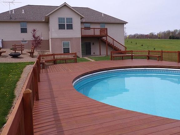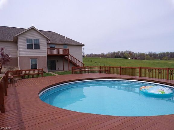 Quality built Schlabach home sitting on 3.47 beautiful scenic acres. A lot of thought went into the planning of this home. Built in 2012 and featuring Cherry finish throughout. Cherry kitchen with lots of cabinets with spot lights, a pantry, large task island with extra eating space and a cathedral ceiling. Open living room with gas fireplace. Enjoy a four season room and your first floor laundry room. Four bedrooms all boasting large walk-in closets with tray ceiling in the main bedroom. Three full bathrooms. Lower level has a 4th bedroom with walk in closet and egress window. Large gathering room with enough space to build yourself a desired media room. Move out to a patio and enjoy a large wrap around deck with a very inviting pool. Great for entertaining your guests! The surrounding area is gorgeous. Three car attached garage with extra room for toys. This energy efficient home has Geothermal heating and a generator hook-up. Clean and nicely decorated.
