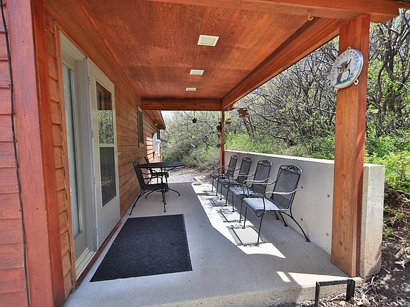 Colorado Mountain Home 67742 Vega Vista Drive this one of a kind property is located in the Vega Vista subdivision within the popular recreation area of Vega State Park. Privacy, charm, & move in ready are some of the many features in this fully furnished, 1020 sq ft home with 3 bedrooms, 1 bath sitting on .57 of an acre among the Aspen trees and a short walking distance to Vega Reservoir. Hardwood floors, carpet, vaulted ceilings, comfy furniture, wood paneled walls all compliment the cozy & efficient cabin for the perfect getaway retreat. Included is a 24X24 detached garage, 3 Tuff sheds, 12X24, 10x10, 10X12 offer ample storage and one building is converted into a workshop with electric. Nearby is Vega Lodge & Vega Reservoir with all the outdoor recreation Colorado provides. It is surrounded by Grand Mesa, Plateau Valley & National Forest & BLM grounds. Just a short drive from the historic western town of Collbran with business services to the area. Come check out this mountain retreat. Recreational Mountain Property Turn onto the graveled drive entrance and notice the wood carved bear standing to the side amid the trees. Drive on to the cabin property located in the heart of the recreation area of Vega State Park. The well-designed floor plan on this 1020 sq ft, 3-bedroom, 1 bath cabin offers the perfect setup with modern facilities. Walk up the wood steps to a tiled mudroom/entryway, with screened wood door and a wooden door leading into the open concept floor plan. Hardwood floors, carpet, vaulted ceiling with ornate ceiling fan/light, coat closet, wood paneled wall, wood accents, and huge double pane windows, a bay window to view the mountain ranges, combined with the comfortable furniture, offer a relaxing atmosphere after a full day of recreation fun or just a place to kickback and relax. Appliances include gas range, refrigerator, and microwave, wood cabinets, and pantry. A large laundry room with a washer and dryer, shelving, cabinets, and an extra space for hanging clothes. A trap door entry leads to the crawl space. Down the hall, the carpeted bedrooms next to the full bath offer a chance to rest with queen beds, roomy closets, ceiling/light fans, and large windows to view the outside natural terrain. Listen to the breeze whisper through the Aspen trees. All rooms have wood doors, wood trim and individual thermostats for the gas hot water baseboard heaters. The full windowed back door with a storm/screen door leads to a covered concrete patio, overhead lighting for those beautiful days and nights the Western Slope of Colorado is famous for. Curved concrete walkways and paver stones amid a graveled landscape lead to the double car garage with a concrete drive. This spacious area is 24x23.7 sq ft of storage for any need, single door entry, an overhead garage door with automatic opener, concrete floor, overhead lighting. Next to the garage is a 10x10 TUFF shed with single door entry is currently set up as a work area with work bench, shelves, wood floor, pegboard, overhead lights, and electric outlets. Two more TUFF sheds, 12x9 and 24x14 with roll up overhead doors, a ramp, offer more secured storage areas. Metal roofs on all buildings. A low-rise cement wall, split rail accent fence, frost free hydrant, wishing well, walk through trellis, bird bath, a décor windmill add to the charm amid the natural terrain beneath Aspen trees. A 1000-gallon propane tank, septic, well with a cistern storage tank, outside lighting, graveled and concrete landscaping creates a one of kind mountain property with modern amenities for a perfect private getaway. COLORADO OUTDOOR RECREATION Step outside this cabin door and within a few minutes along tree-lined lanes access Vega State Park. Enjoy over 1800 acres of year-round recreational activities. Endless camping sites, hiking trails and mountain ranges surround Vega Reservoir offering fishing and boating, or a chance to view the beauty of the rippling clear mountain waters behind the Vega dam. Nearby, Vega Lodge, offers cabin rentals, restaurant and much more. Highway 330 follows Plateau Creek and winds through Plateau Valley among ranches and residential homes to Highway 65 known as the scenic byway of Grand Mesa - the largest flat top mountain in the world with over 300 lakes for fishing, boating, camping, lodges, and thousands of trails for hiking, ATV, biking, horseback riding, cross country skiing, snowmobiling, and hunting districts. Photo opportunities abound for the amateur or professional photographer. Powderhorn Ski Resort sits at the base of Grand Mesa with ski slopes for all ages and skills with winter and summer activities. Within an hour's drive explore the high desert recreation areas around Grand Junction known for the Colorado National Monument, canyons, dinosaur finds, hiking and biking trails, valleys, rivers and lakes for fishing and boating to name a few of the recreation attractions. Plateau Valley Community This property is located minutes away from Collbran. The historic town contains small businesses with services for the needs of the residents and is located on Highway 330 known as the main thoroughfare to recreation areas. The town consists of a fire department, police dept, city hall, state shop, bank, auto repair, feed and c-store with 24 hour fuel pumps, restaurants, churches, schools, medical center with emergency care, vet clinic, hardware store, 24/7 gym, grocery store, real estate and insurance office, PO, spray office, locker plant, and specialty stores. Rodeo grounds host many events, throughout the summer. The western store fronts add to the historic aura with an occasional cattle drive along the country roads. Grand Junction is approximately an hour away off of I70 with major shopping, museums, regional airport, colleges, hospitals, and much more. Step out the door of this one of a kind mountain cabin and enjoy the Western Slope of Colorado and all it has to offer year-round.