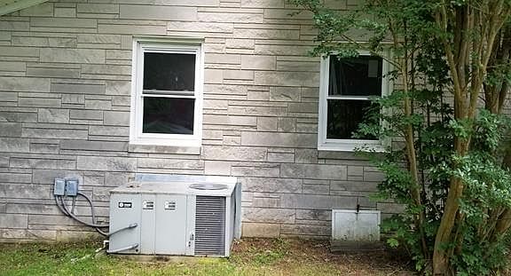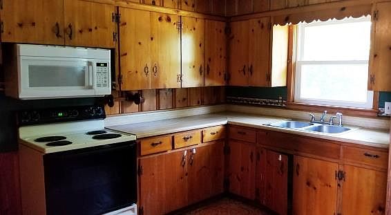 Country home built w/stone mined from Alabama, sitting on over 11 acres, w/ 2 possible 3 bedrooms, 2 bath, needs some work & updating, used as rental, large walk in shower, central heat and air with fireplace w/insert, land open & some woods, out buildings. tilt in windows, estimated 8 acres wooded, 3 acres open. No close neighbors..