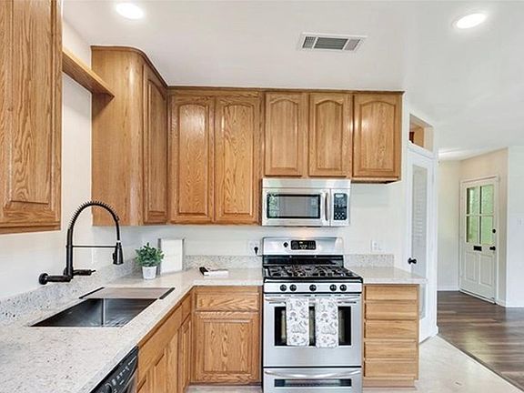 Freshly painted house with a large private backyard. Close to schools, shopping and easy freeway access. Appliances included - washer/dryer, refrigerator, dishwasher. Renter responsible for all utilities - water, sewer, electric, gas and trash. Weekly landscape maintenance included. Up to 2 pets allowed, breed restrictions on dogs applies.