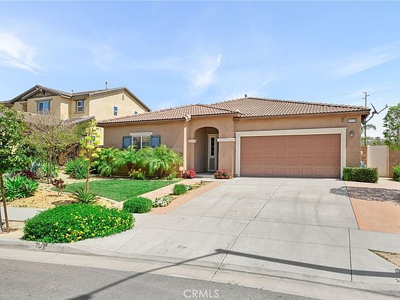 Attention Golfers and Executives!! Just a golf cart ride away from the picturesque fairways of Oak Quarry Golf Club, awaits a refined sanctuary of modern living with NO HOA because YOU are the boss! This distinguished single level 4 bedroom, 2 bathroom residence epitomizes comfort and functionality, offering a peaceful retreat with breathtaking Quarry views all around you. Upon entry, an inviting den beckons, offering versatile space ideal for a home office or personal gym, catering effortlessly to the demands of contemporary lifestyles. The heart of the home unfolds into an expansive open floor plan, where the living room bathes in natural light pouring through large windows, creating an airy ambiance that is both welcoming and rejuvenating. Adjacent, the gourmet kitchen stands as a culinary haven, adorned with gleaming granite countertops, a generous pantry for ample storage, and a breakfast bar perfect for casual dining or morning coffee rituals. The executive suite exudes tranquility and privacy, featuring a unique barn door entry to an ensuite bathroom adorned with dual sinks, a spacious walk-in shower, and a sprawling walk-in closet designed to accommodate every wardrobe need with ease. Three additional well-appointed bedrooms and a full bathroom provide ample space for family and guests, while a dedicated laundry room enhances daily convenience. This residence is not only a testament to luxury but also to efficiency, boasting leased solar panels and a tankless water heater, ensuring sustainable living and reduced utility costs. Step outside to discover a sprawling covered patio, an idyllic setting for relaxing and entertaining, complemented by a thoughtfully crafted fire pit and seating area. A lush, verdant lawn awaits beyond, offering a safe haven for pets and children to play freely amidst plentiful fruit trees that promise seasonal delights. Embrace the tranquility of a community free from HOA restrictions, where daily life is complemented by the allure of nearby golfing pleasures at Oak Quarry Golf Club and breathtaking vistas of majestic mountains that paint the horizon just beyond the greens. Welcome to your new Riverside haven, where every detail reflects a commitment to comfort, style, and the enduring allure of Southern California living.