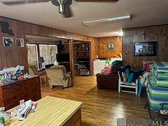Soak in the beauty of False River with the panoramic, elevated view of this lakefront camp. 2 bedrooms, 2 baths, spacious and open kitchen, living and dining, large windows and french doors, 32 X 10 covered deck and lots of storage underneath. Nice pier with double railed walkway, party barge lift, vinyl bulkhead and limestone. Great south facing location for beautiful sunrises and sunsets without all the glare, good water depth.