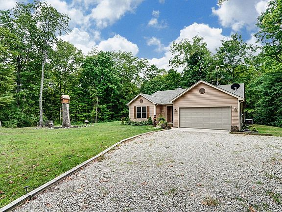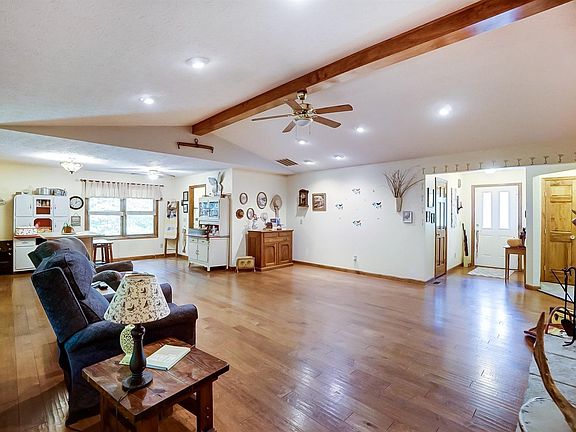 Easy one floor living in this open ranch on 2 acres in Madison Twp. Open floor plan with large great room w/ stone fpl, dining area, first floor laundry, and kitchen that walks out to covered deck. New carpet in bedrooms and hall. Hardwood floors throughout living area. Deck overlooks 2 acre private wooded lot. 2 car garage and plenty of parking.