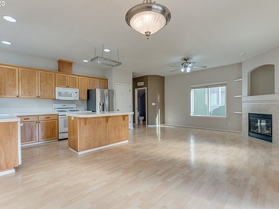 Check out 3D tour! Great-Room plan w/ Cozy Gas Fireplace. Brand new carpet. 2 car Garage! Island Kitchen, Beautiful Wood Cabinets, Tile Counters, Gas Range, Built-In Microwave, Pan Rack & Pantry. Laminate Floors on Main Level, Vaulted Master Suite w/ Large Walk-In Closet & Dual Sinks. Over-sized 2nd Bedrm w/ Vaulted Ceilings, Fenced Backyard w/ Huge Covered Patio. Great privacy w/ NO 2 story homes behind. A/C, Forced Air Gas Heat & Gas Hot Water. Close to schools, many parks, shops & eateries