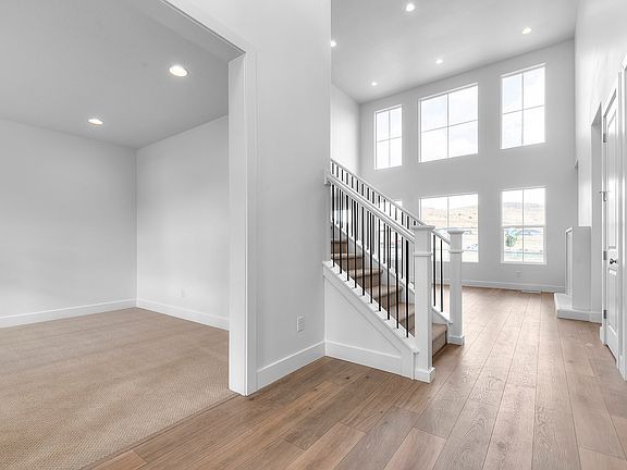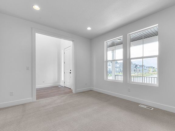 Come see this brand new Hamilton Traditional home in the great Overland master planned community! This home showcases a modern kitchen with bluff maple cabinets, quartz countertops, a tile backsplash and stainless steel gas appliances with a double convection oven, creating a chef-ready cooking space. Laminate hardwood, tile, and carpet flooring provide a warm and functional foundation throughout the home. Enjoy spacious living with 9-foot basement foundation walls and a three-car garage with exit door. Style meets practicality with Christmas light package and a cozy gas log fireplace. Outdoor living is enhanced by an expanded deck, perfect for entertaining. The owner's bathroom features tile surrounds paired with brushed nickel hardware for a refined finish. Additional details include textured walls, two-tone paint, and large contemporary base & casing, elevating the home's modern appeal. Includes access to the community barn and pool with HOA.