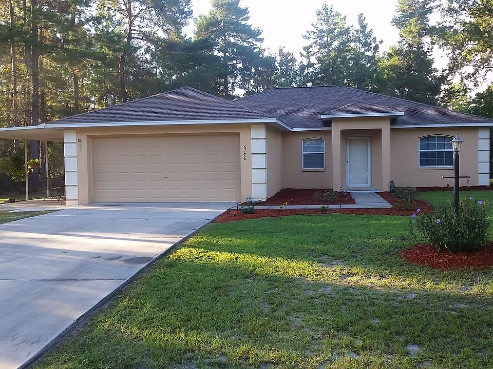 Nice large home with 3 good sized bedrooms, one story open floor plan design, Large Master Bedroom, His & Hers walk-in closets, large living room with vaulted ceiling and a split bedroom plan with inside laundry. Eat-in kitchen with breakfast bar. Both guest rooms have carpet. Newer A.C. Compressor, Newer upgraded Carpet. Covered 20' Patio, Doors Extra wide for Wheelchair access, Accessible Shower in Guest bath. Large living room with vaulted ceiling. 2 car garage and shed. USDA Financing Option. Close to shopping and easy access to I-75.