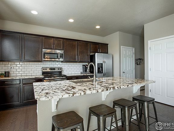 Nearly new home has one of the best lots in the neighborhood: 10+ sqft and mountain views all on a garden level cul-de-sac home site backing to greenbelt! Upgraded granite countertops in the kitchen, wood flooring, pantry, huge master suite, and oversized deck looking over the huge backyard complete with tunnel slide from deck to the yard! This home was built in 2017 and comes with remaining warranties, inspection report available. Great pool, clubhouse and workout facility and Poudre Schools!