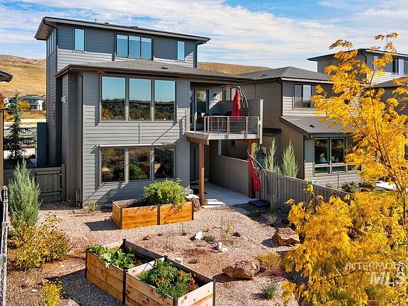 Don't miss this rare opportunity! Set on the rim of the Boise River; highlighting the tranquil views of the Boise River basin & foothills from almost every room. The mesmerizing view draw you into the spacious great rm featuring 10' ceilings & wall of windows allowing the the natural light to flow effortlessly throughout. Relax on your open balcony featuring upgraded cable railing & enjoy the spectacular sunsets. Private master features sitting area or additional flex space, stunning views of the foothills & Boise River basin. Professionally designed low maintenance Xeriscape landscaping & raised redwood garden boxes. Lots of additional upgrades; lighting, remote-controlled outdoor solar shades on west & east facing windows (3 floors, east solar shade is also a black out blind), Remote-controlled insulated interior window blinds, HVAC upgrades to hospital-grade air quality, GAPA filter air purifier, GPA ion generator, & humidity control w/ dual comfort zone thermostats.