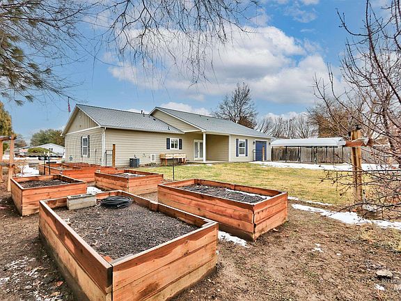 2014 BUILD on .41 ACRE lot! No HOA - You will want to bring everyone to see this hidden Boise Gem! Single level 3 bedroom, 2 bath home with 2 CAR 8ft tall door pull through garage! Inside find a HUGE living space with ceiling fan open to kitchen with large island complete with seating space, stainless appliances including gas range and HUGE walk in pantry! Primary suite with walk in closet, ceiling fan and walk in tile shower! Split bedroom floorplan features 2 additional rooms one with built in murphy bed, large utility room, 9 ft ceilings and solid core doors throughout. Thoughtfully designed every step of the way including large attic storage, quality hardie board siding, and raised architectural roof done within the last 2 years. Back yard features apple, cherry, peach and nectarine trees with built in garden boxes and room to potentially build a SHOP?