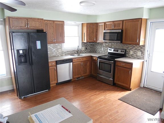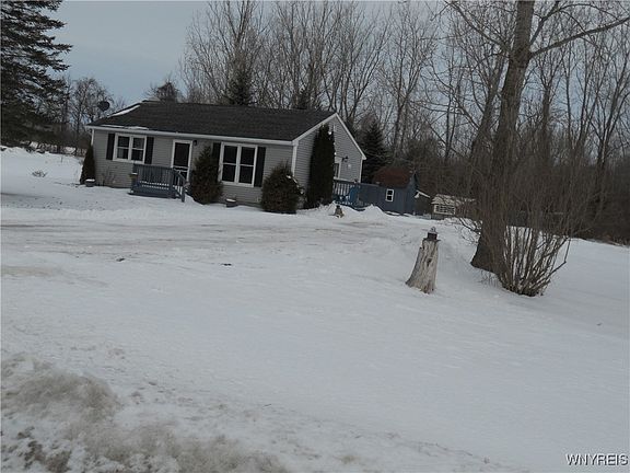 Located in the Town of LeRoy sits this charming 2-bedroom 1 bath ranch. Located on just over 1/2 acre in an agricultural district. The house has just been updated to a heat pump furnace/Central Air and hot water tank this month! Freshly painted surfaces throughout. The eat in kitchen is "open concept" to the large living room. 2 Refrigerators (one in basement), Oven and Dishwasher are included. There is also an under-counter Bluetooth/CD Player so you can listen to your favorite tunes while you cook. Hardwood floors adorn the main floor for easy maintenance. Both bedrooms boast plenty of closet space. The bathroom has a solid surface counter with smart exhaust fan. The basement access is from the kitchen. High ceilings allow for recreation or storage throughout. Power is provided a 200-amp electrical service with square D Breakers. The laundry room is in the corner of the basement. This allows plenty of room to store/stack and fold laundry while being out of the way. Outside of the home is well designed. There is a partially insulated greenhouse directly behind the house. The dryer vent has been ingeniously vented into the green house to help heat it in the winter and can be disconnected in the summer. There is a 3x5 chicken coop with a 16-foot run that is angled to allow drainage. It has 2 solar lights and a solar fan to vent in the summer. The back of the coop is concreted for safety. There are also 2 sheds with solar lights and the larger shed has loft storage. Behind the chicken coop are 2 compost bins to dispose of chicken "Waste" or other organics. On the back of the house near the green house is a paver stone patio (10x8) with poles/hardware for a sunshade. (sunshade not included) Attic access is provided by pull-down stairs with an "Attic tent" above the hatch for efficiency. The yard has fruit trees with 2 seasons on them. 2 Apple, 2 Pair, 2 Peach trees, 2 blueberry and 1 blackberry bush. This home is move in ready and for those sick of egg prices, just add chickens and you're ready to go! This is the PERFECT starter home or for couples looking to downsize. There is room to add a garage or barn with ease. this won't last long, See it today!