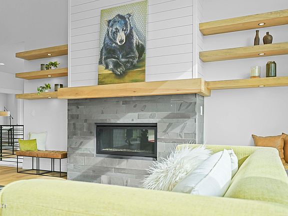 Lava stone fireplace surroundWater closetGenerous dining roomSpacious entrywayLarge format tileExtended ceiling heightsCustom tile walk-in shower
