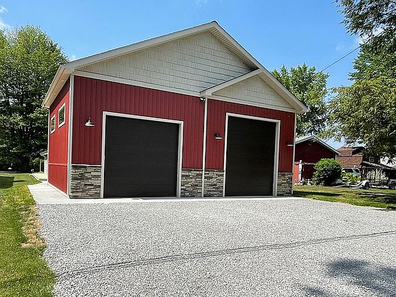 NOTE: ZILLOW'S ZESTIMATE DOES NOT INCLUDE NEW OVERSIZED TWO-STALL GARAGE BUILDING... This is a year-round, immaculate, lakefront home on Pennsylvania’s beautiful Pymatuning Lake. This tranquil setting enables fishing, water sports, campfires, gorgeous sunsets and much more! This low maintenance home is serviced by city sewer, and the newly constructed garage provides endless possibilities. The home is constructed with 6-inch insulated walls, thermopane windows, a new in 2019 shingle roof with gutter guard, and a new deck in 2019. A new hot water tank was installed in 2022 with a new state-of-the-art desulfurating system. The house also boasts a reverse osmosis drinking water system for drinking and ice making. Water is treated by Kinetico water conditioning. The detached garage built in 2022 is 35' x 25', with 14' ceilings (ideal for a lift system) and 6-inch walls. Two insulated garage doors with Wi-Fi openers measure 10'w x 10'h and 10'w x 12'h. Garage floor is in-floor radiant heat ready. There is ample second floor storage. The garage has a 200-amp electrical box, along with a 50-amp outlet for EV/RV charging. This is an ideal storage facility for boats, RV'S, trucks and cars.