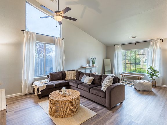 Beautiful Family Home located in desirable Blue Oak Terrace with OWNED SOLAR! Situated in a quiet & peaceful neighborhood, this home has a Great 4 bed, 2 bath plan with a kitchen that opens up to the family room complete with a cozy fireplace. The tall, vaulted ceilings and large windows makes for a great home to host in! Vaulted ceilings in the master with Sliding Glass Doors to the large backyard, hot tub ready. Double master bedroom sinks & Newer floors & roof! Located in central Redding on the top of Hilltop means this home is close to everything! Close to the neighborhood walking trail that has lovely scenery, local transportation, shopping, and the Sacramento river trail. 2 car garage, laundry room, and a large fenced backyard, for games & gardening. Make this home yours today!