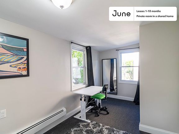 This Queen room in East Boston is available on a 12 month lease or a flexible short term (31 to 364 days) lease. You pick your custom start and end date. Monthly rent rate is determined by furnishing preference, move-in date and move-out date. Speak to a June representative for recommendations on the best stay duration for the lowest rate.