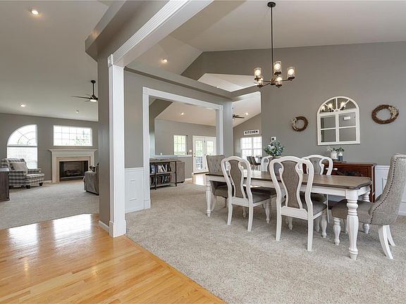 Step inside to discover a world of elegance & comfort, w/ an open floor plan & soaring vaulted ceilings that create a sense of spaciousness. The dining room boasts sophisticated wainscoting, setting the tone for stylish gatherings. Prepare to be dazzled by the luxurious kitchen featuring 42” modern white cabinets, granite countertops, breakfast bar, & huge walk-in pantry fit for a chef. French doors lead from the breakfast room to a covered deck, offering a serene view of your private backyard. The primary bedroom beckons w/ its elegant tray ceiling & a luxury en suite bathroom featuring a double bowl vanity & an expansive walk-in shower. The beautifully finished walk-out lower level is an entertainer's paradise, complete w/ a wet bar, bedroom, & full bath, providing the perfect space to relax and host guests. Embrace the designer's touch in every detail of this home. Don't miss the opportunity to call this exquisitely luxurious retreat your own.