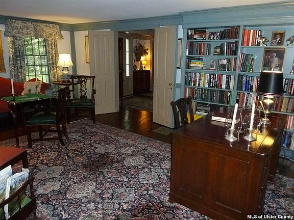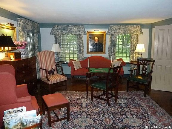 This is as authentic an Early American home as one is likely to find and one of the very rare ones in Woodstock. Although records say the house was built in 1825, it is more likely that it reflects the initial record-keeping: the house appears to a practiced eye to have been built in the mid- to late-1700's. The current owner has painstakingly preserved what could be and reconstructed what once was, from the cedar shake roof to the inlaid Delft tiles in the kitchen ceramic floors. Set on a serene and manicured acre, and retaining a sense of privacy despite being on Route 212, the home is oriented away from the road and features a lovely stone patio at the back. The especially large living room can easily function as library and card room, as well as living area, with the dining room featuring some stunning mahogany paneling. Even the wallpaper and kitchen back splash tiles are gorgeous additions to an already stunning template. Bedroom sizes are very generous. This home is especially appealing to the purist who would love to live in genuine Early American style and surroundings but it can be enjoyed and loved by anyone else as well. Owner, who will be relocating, is also willing to sell the home's stunning period furniture, rugs and artwork, valued at around $75,000, at a substantial discount to an interested buyer.