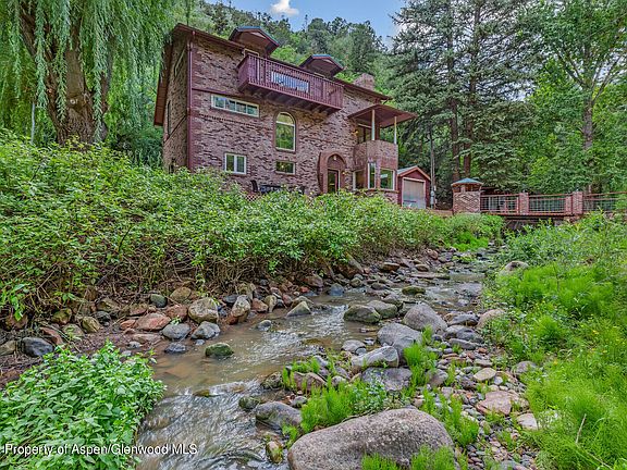 Dreaming of your Italian style villa in the Roaring Fork Valley with modern amenities? Come discover this one of a kind property located in an idyllic setting on Three Mile Creek. It strikes a balance of privacy and convenience: tucked away in the mountains with no HOA, yet less than a mile from Midland Ave with all the amenities Glenwood Springs has to offer. Updated in 2017, this brick style home has a beautiful modern kitchen, radiant heat floors, reverse osmosis water filtration system and new boiler in 2022 . Enjoy the sounds of the creek from one of the balconies sipping your favorite drink and you won't want to leave this serene atmosphere. The bonus cabin could be used as an office, gym or art studio. The main floor master bedroom adds value to a comfortable living.