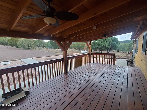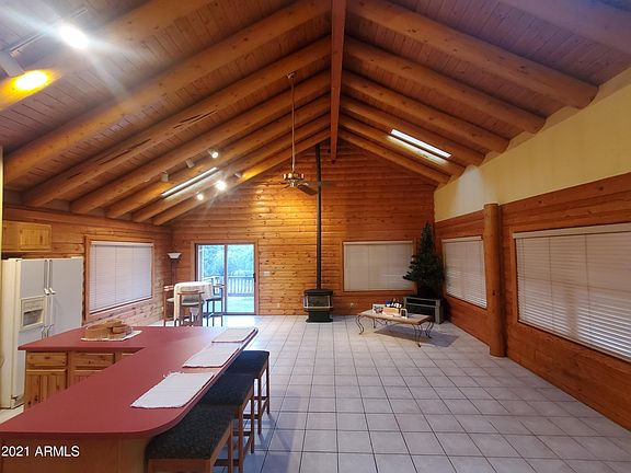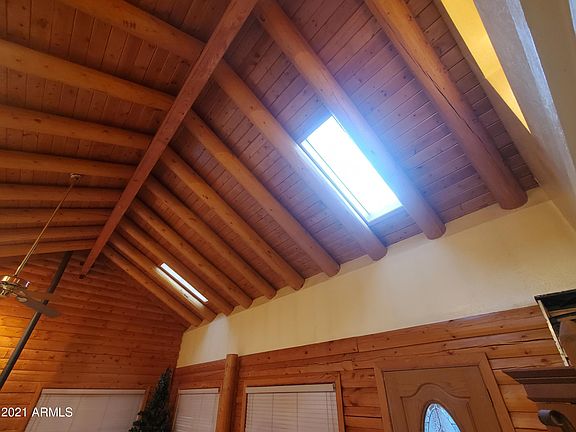Beautiful Log Cabin in Elk Country! This gorgeous log cabin on 5.6 acres will be someone's new ''Paradise''. Just a few minutes away from Downtown Show Low to the East, this peaceful home on a paved road awaits it's new family. Outside are 2 huge covered patios for your sunrise with morning coffee and a rocking chair for the beautiful sunsets! The inside features tall vaulted tongue and groove ceilings with huge beams, vigas poles, and skylights! The open concept kitchen, dining, living areas make this home an entertainer's delight! The kitchen has plenty of cabinets with counter space galore along with a kitchen island. These beautiful log homes rarely come available so hurry before it's gone!! Home has White Mountains and ARMLS lockboxes for local and Phoenix Realtors. Please leave card.