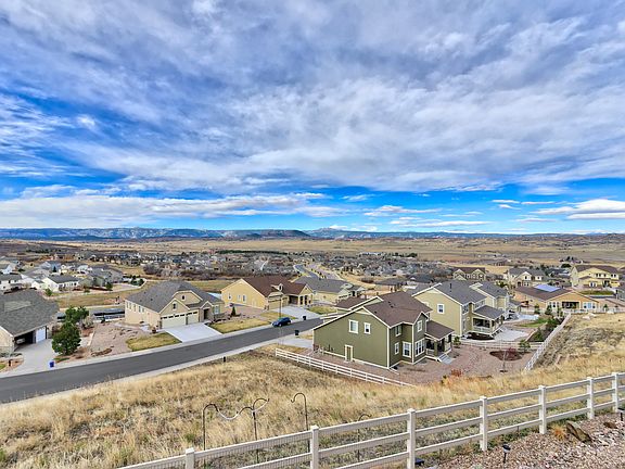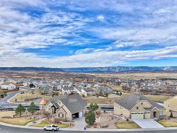 Views! Views! Views! This Gorgeous Lennar Wellington Model will be ready for you to call home. Backs and fronts to open space and features breathtaking Million dollar views of Pikes Peak and the Front range!! Open Inviting Floor plan, 9' Ceilings! 8 foot doors. Wood floors throughout! Butlers pantry, Large Walkin Pantry! Cherry cabinets. Gourmet Kitchen with Stainless! Double Ovens, Gas Cooktop! Sit and Relax in the Master Suite and watch the Stunning Sunsets! The Large Dining Room will fill the largest of families. The Open Great Room is Perfect for Entertaining. Enjoy the Views from the Covered Deck with an Awning for shade when needed. Cozy Covered patio below. There are Views from every Room in this house including in the Full Walkout Basement. Option to Finish the Basement the way you like for that Extra Space! The Family Room boasts a Gas Fireplace and a Custom Built Entertainment Center! Builtin surround sound system. Gun safe in large closet is bolted down, it stays. Lots of storage! Updated lighting, Custom Window coverings including shutters. Lots of extras!! Study can be used for the 3rd Bedroom, non confirming. 3 Car Garage!