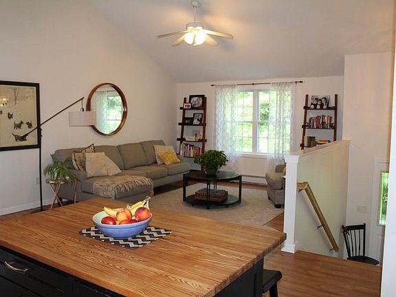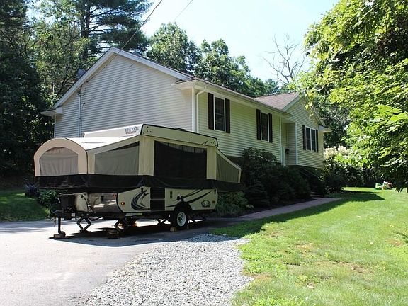 Move in ready Raised Ranch on nearly an acre of land with a nice yard. Built in 2003 with 3 bedrooms & 2 full baths, the open kitchen-dining-living room has a cathedral ceiling & a spacious feel. Soapstone kitchen counter tops on oak cabinets with a tile floor adjoins dining area & a slider to the side deck & yard. Tile bathroom flrs, one piece tub/showers & well kept carpet in bedrooms. Lower level family room is 14 x 24 with carpeted floor, dropped ceiling, wired for surround sound & has both baseboard heat & a pellet stove, a great space for a home office, play area or tv room. Single car garage under plus a storage shed. Good location for travel towards Worcester, Springfield, the Mass Pike & close to the Hardwick Elementary School. Hardwick is a beautiful New England town abutting the Quabbin Reservoir with Eagle Hill School & The Center At Eagle Hill, "A PLACE TO DISCOVER MUSIC, DANCE, THEATER AND ARTISTS OF EVERY DISCIPLINE IN THE MOST BEAUTIFUL SETTING IN CENTRAL MASSACHUSETTS"