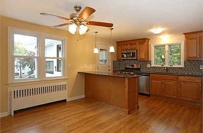 Just RENOVATED 2013, refin, HW Flrs, interior all painted; new frt door, kit. w/new flrs, wd cabts, granite counters, glass tile bksplash, ss range, dishwasher, microwave; renov.bath w/ vanity and faucet; New full bath in basement. Great sunroom off kit, 2nd fr larger bedroom has adjoining office/den rm: + 4th bedroom, both w/closets and ceiling fans.Ceilings higher than most Cape style homes.Lg, rec room in basement. New vinyl siding and windows'2013. Water Heater'2010; roof'2007. furnace'2005. Spacious rooms, many windows, good closet space. Move right in and enjoy this "as good as new" and charming home with wonderful living space. Large backyard w/ patio.Low taxes. NOT IN FLOOD ZONE!!! NO FLOOD INSURANCE!!! Near NYC transportation.