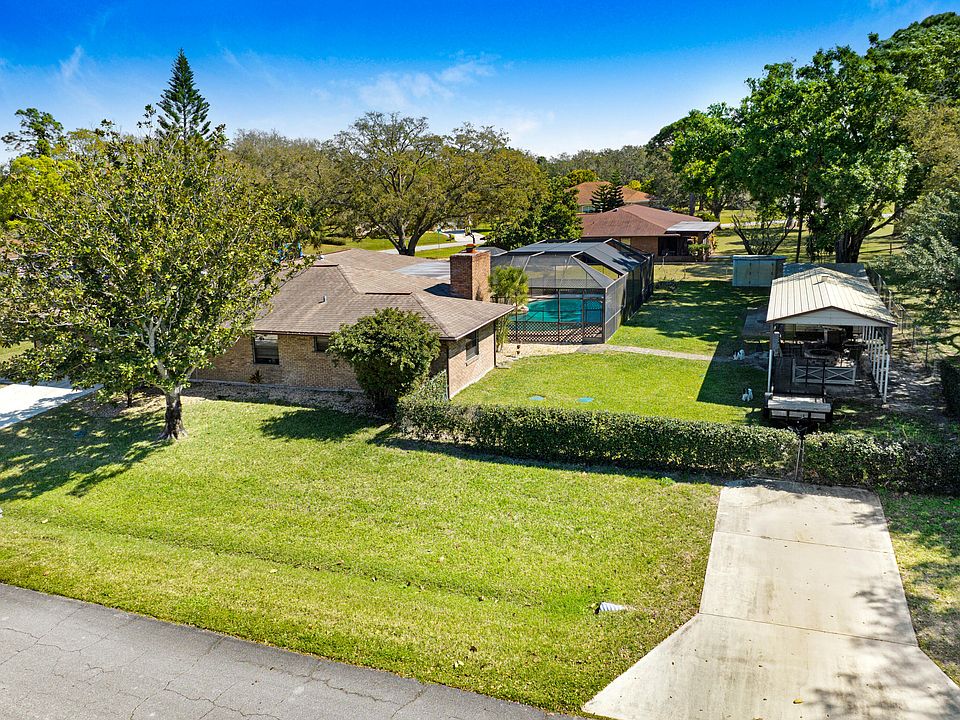Prestigious Lockmar Estates, this gem sits on a lush .43 acre lot, offering privacy & space in abundance. Charming 4BR, 2 baths.Imagine a fenced yard that opens to a world of outdoor living: a screened pool with extra baby fencing, a fire pit, BBQ, & TV for those perfect evenings under the stars. Peace of mind is here with a new roof coming March 2024 & a fresh pool screen right after, ensuring effortless enjoyment. Open floor plan with the kitchen at the center of the home. Real wood cabinets, granite tops & stainless appliances.This home is a haven of comfort with a 5 year old A/C , an almost new hot water heater, & a 2-3 year old pool pump. Wired for a whole house generator. Master shower boasts double shower heads. Easy RV storage. Wood & gas fireplace creates a cozy ambiance in any season. Vinyl wood plank flooring or ceramic tile. An outdoor shed with electricity offers additional space and flexibility. CALLING FOR HIGHEST AND BEST 3/18/2024 (MON)BY 5PM