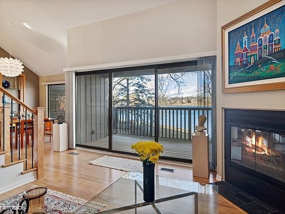 Multiple offers received. Please submit Best and final by 5 pm 3/13/23. Beautifully updated sun-drenched unit with soaring ceilings and incredible unobstructed views of the 100-acre lake. This fabulous open floorplan home draws you into the vaulted living and dining rooms - with their captivating waterfront views, a wood burning fireplace, and a private balcony. Setting this unit apart from all others, the spiral staircase was replaced with a stunning architecturally designed one, allowing for more functional second floor living space while adding beautiful aesthetics throughout. The kitchen opens to the dining and living area with newer appliances, quartz countertops and a breakfast nook. The spacious 15 x 20 main floor primary suite offers plenty of closet space and a large five piece bathroom. Main floor also boasts a half bath (with room for a shower to be added), and in-unit laundry area. The full-size artistic staircase leads to a redesigned second floor with loft overlooking living room and outdoors. There's also an office that can be easily used as a second bedroom, and additional storage/closet space. Other new upgrades include - bamboo wood flooring throughout, (with special insulation for noise and energy efficiency), fresh paint, and designer light fixtures. Enjoy nature and the beautiful outdoors with the newly redone private cedar balcony, perfect for morning coffee and evening sunsets. This bright and inviting property offers the best of all worlds - resort living, gated neighborhood, walking trails, bocce and pickle ball, tennis, a renovated club house with party rooms, gym, and indoor and outdoor pools. Enjoy the groomed beach and a marina which provides kayaks, paddle boards and small boats for residents' use. Golf club memberships also available. A one car garage provides covered parking with additional dedicated outdoor driveway spot for second car. All buyers must fill out a LBS application form and pay a 3 month HOA reserve fee. SHOWINGS BEGIN 3/9/23. Please allow time for seller to approve.