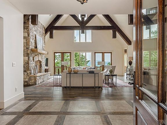 Step into refined mountain elegance with this stunning new custom home which was just completed and ready for immediate occupancy. The gated community offers breathtaking long-range mountain views. Enter through the attractive mahogany doorway to discover the home's great room, showcasing vaulted ceilings with wood beam accents and large windows, allowing ample natural light. A large stone fireplace emphasized by a reclaimed wood mantle and cedar shake backdrop, along with European Oak floors throughout, add warmth and rustic charm to the space. From the great room, enjoy easy access to the uncovered stone patio, where you will spend hours gazing at the surrounding mountains and forest. Perfect for entertaining, the spacious and open kitchen features a large central island, a Galley Sink with dual faucets, a Thermador stove, a Sub-Zero refrigerator, a built-in desk, large pantry cabinets, and an adjacent dining area accented by a beautiful stacked stone wall. Located off the dining room is a covered patio with another stone fireplace. On the opposite side of the home, you will find a sumptuous primary suite concealed behind double entryway doors. The primary suite features a morning kitchen with a refrigerator, a stone fireplace, two substantial walk-in closets, and a luxurious spa-like bathroom with double vanities, a soaking tub, a separate makeup vanity, a private commode, and a sizeable double-headed walk-in shower with views of the mountains. On the main level, you will also find the laundry room, a powder room with a custom vanity, and access to the two-and-a-half-car garage. Following the curved floating staircase up to the second floor, guests will enjoy total privacy with three bedrooms, each with an ensuite bathroom, a lofted sitting area overlooking the great room, and a morning kitchen. Just minutes from nearby Cashiers and Sapphire, the finest Blue Ridge Mountain living awaits.