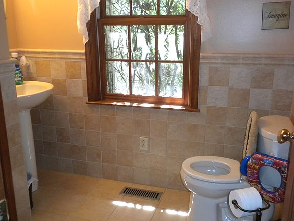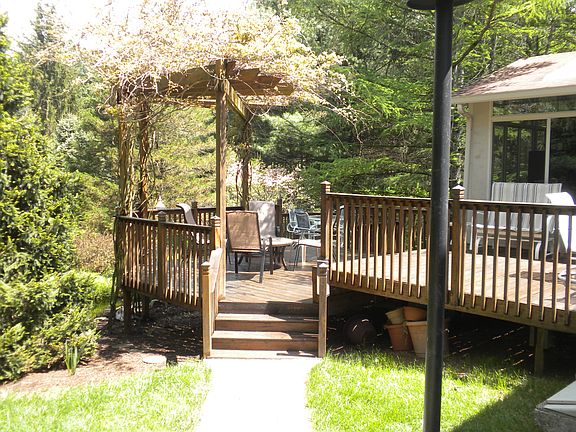 Secluded setting on 6.94 acres, 3 tier deck, sunroom with baseboard and propane heat, landscaped, 14x20ft utility shed.