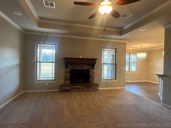 Beautiful custom built brick home constructed in 2016. Home has spacious rooms and closets, beautiful kitchen with plenty of cabinets, granite throughout, and an inviting living area with a gas fireplace. You will love the large two car attached garage leading into the large laundry area. Home is at the end of the lane just at the edge of town. Newly constructed homes are a rare find in this area.