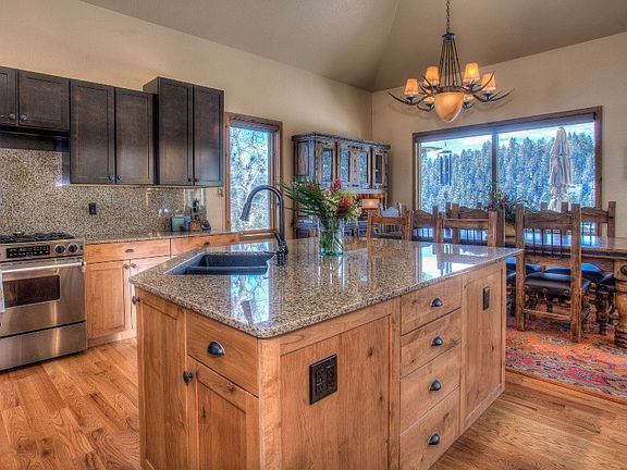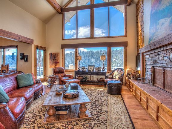 Privately located on 5 gentle acres with mature pines, aspens and a gurgling stream Plenty of natural light, relaxed elegance and classic style Soaring windows bring the outside landscape in offering sweeping mountain valley views Comfortable open design with high ceilings, timber beams, gleaming hardwood floors and custom cabinetry This open design is perfect for entertaining - blending living, dining and kitchen areas that open to a huge deck Gourmet’s kitchen is the heart of this home featuring a large center island, granite counters, stainless appliances and a spacious pantry Enjoy your natural surroundings in this impressive great room with floor to ceiling windows. A cozy wood burning fireplace surrounded by custom stacked stone adds another element of ambiance The west wing bedrooms share a Jack and Jill bath and a charming laundry/mudroom and homework station. The private upper level master suite enjoys a spacious walk through closet and access to a private covered deck A secondary staircase leads to a charming office or is perfect for a media room. This home is loaded with warmth, character and charm! Just minutes to I-70, 25 minutes to Denver and 50 minutes to DIA!