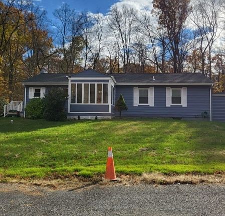 Large combined parcels (Franklin Twp 3.84 and Delaware Twp. 1.71) totaling 5.55 acres of open and wooded land. Ranch style home has 3 bedrooms and 2 full 1 half bathrooms with partially finished basement with walk out doorway. Oil tank in basement above ground. Well water and septic. Washer and Dryer currently in 3rd bedroom. Washer and Dryer not included in the sale. Additional Laundry Hookup in Basement. There are two additional structures (cottage and pole barn) on the property. Both used for storage. Property could be converted to commercial. But once converted, can no longer go back to residential. Selling "AS IS". This is an estate sale.
