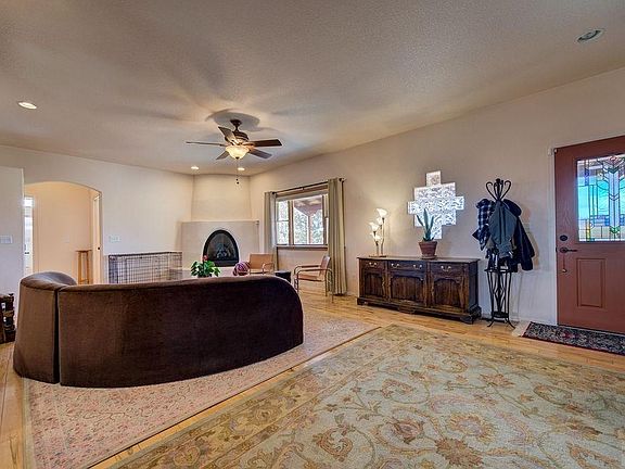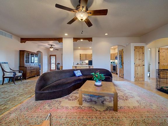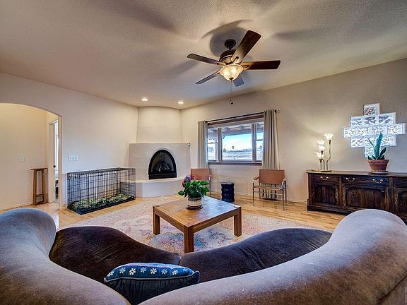 Come see this Southwest style home with low maintenance living. This home features 4 bedrooms, 3 full baths, 3 car garage, a xeriscaped yard that is completely fenced with an automatic sprinkler and bubbler system that extends to the large fenced garden area. Spacious living with beautiful wood floors, and a Kiva gas log fireplace, every bedroom is spacious and boasts large closets with built-in shelving, two are walk-in closets. The furnace and 16-seer air conditioner system are newer (2020), stainless steel appliances are included, large pantry, and generator is hooked up and will stay. There is 5G internet with fiber optic network Highline available by the end of this year. Too many amenities to mention.