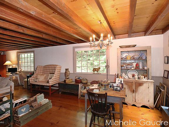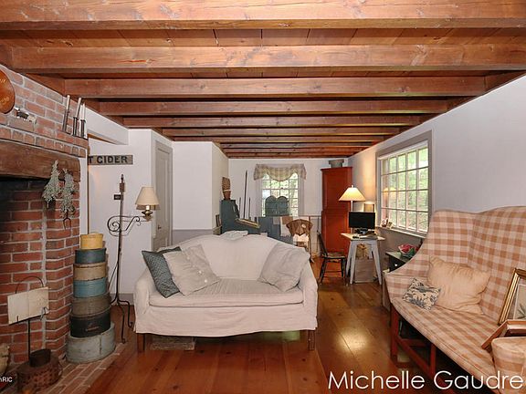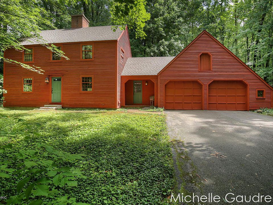 Take a step back in time in this historic replica of an 18th Century Saltbox, where every element of design has been hand selected & carefully crafted. Truly a one-of-a-kind opportunity, this home features custom Marvin windows, 12" white pine flooring, early horizontal wainscoting, oversized hand-thrown brick, custom made doors with hand-forged handles, hand-made tin ware lighting, hand cut river stone porches, Count Rumford gas fireplace, 2 wood fireplaces & more! Full basement ideal for additional future living space/rec room & optional laundry location. Mud room & 2 car garage w/ walk-up attic for storage. Perfectly nestled on 2.6 wooded acres with myrtle & wildflowers as low maintenance ground-cover. Just a short stroll to Ruehs Park on the Thornapple River & minutes to M-37 & M-6.